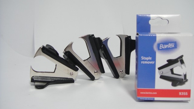 Sebuah remover pokok adalah perangkat yang memungkinkan untuk penghapusan cepat pokok dari materi tanpa menyebabkan kerusakan . Bentuk yang paling terkenal dari remover pokok , yang dirancang untuk staples cahaya -gauge , pada dasarnya terdiri dari ) dua berlawanan , pasangan poros – mount tipis , wedges curam dan b ) musim semi yang mengembalikan perangkat ke posisi terbuka setelah digunakan . Meskipun irisan logam sederhana dapat digunakan untuk tujuan yang sama , dan meskipun beberapa stapler ( khususnya yang kecil sekitar 1,5 inci ( 3,8 cm ) panjang ) memiliki wedge tersebut di akhir engsel mereka , penggunaan wedge cenderung merobek kertas rapuh.
